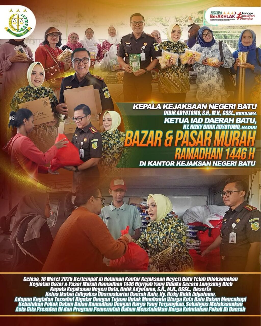 Adapun kegiatan yang dinisiasi oleh Kajari Batu dan Ketua IAD Daerah Batu tersebut bertujuan untuk menjaga harga Kebutuhan Pokok di Kota Batu serta membantu Warga Masyarakat Kota Batu dalam mencukupi kebutuhan pokok di Bulan Ramadhan, selaras dengan Asta Cita Presiden RI dan Program Pemerintah dalam mengendalikan angka inflasi di Daerah