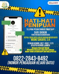 Untuk informasi lebih lanjut dapat menghubungi Admin Seksi PA PBB Kejaksaan Negeri Batu melalui nomor 0822-4553-1451 (WhatsApp Tersedia)