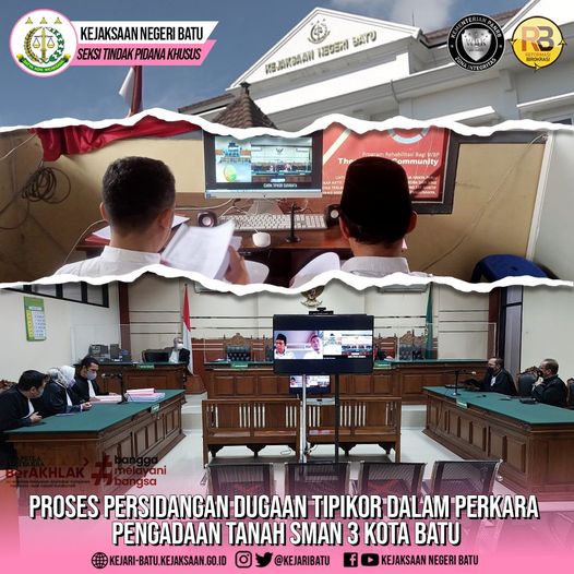 Pada hari Jumat tanggal 10 Juni 2022 bertempat di Pengadilan Tindak Pidana Korupsi pada Pengadilan Negeri Surabaya, telah dilaksanakan Persidangan Perkara Dugaan Tindak Pidana Korupsi dalam Kegiatan Pengadaan Tanah Bagi Pembangunan Untuk Kepentingan Umum Prasarana Pendidikan atau Sekolah Pemerintah/Pemerintah Daerah (SMAN 3 Batu) pada APBD Kota Batu Tahun Anggaran 2014 an. Terdakwa ES dan NIS dengan agenda Pembacaan Tuntutan
