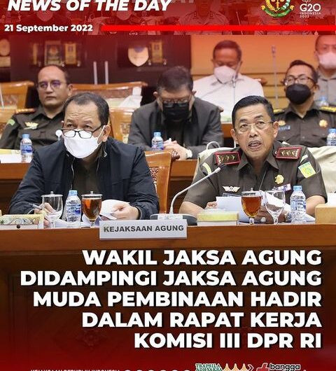Pada Rabu 21 September 2022, Wakil Jaksa Agung Didampingi oleh Jaksa Agung Muda Pembinaan beserta jajaran Kejaksaan Agung, Hadir dalam Rapat Kerja yang diselenggarakan...