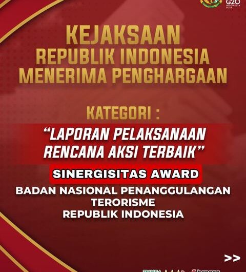 Kejaksaan Republik Indonesia menerima penghargaan dalam Sinergisitas Awards Badan Nasional Penanggulangan Terorisme (BNPT) Republik Indonesia untuk kategori “Laporan Pelaksanaan Rencana Aksi Terbaik”, yang merupakan...