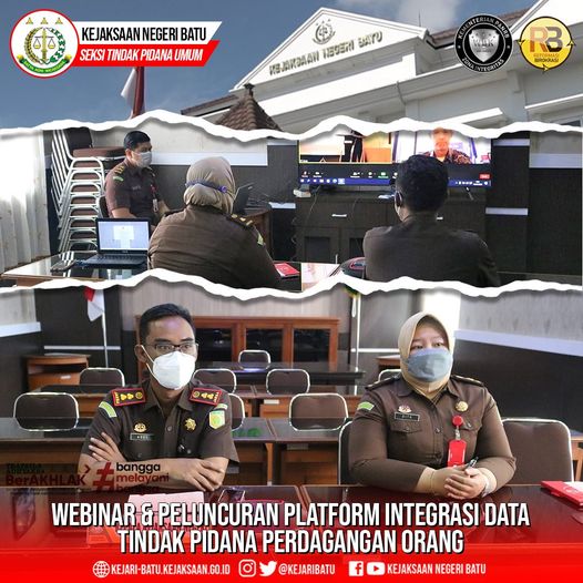 Pada hari ini, Senin tanggal 13 Juni 2022 pukul 09:00 WIB bertempat di Aula Vicon Kantor Kejaksaan Negeri Batu telah dilaksanakan kegiatan Webinar & Peluncuran Platform Integrasi Data Tindak Pidan Perdagangan Orang (TPPO) bersama Jaksa Agung Muda Bidang Tindak Pidana Umum secara virtual